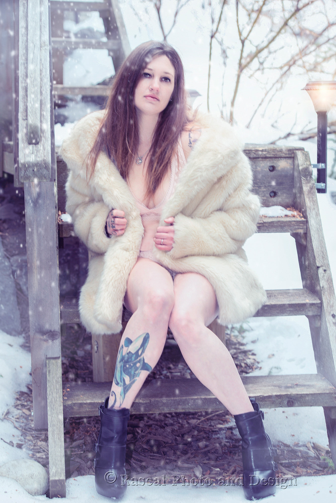 outdoor boudoir session at Gap Lake, Alberta